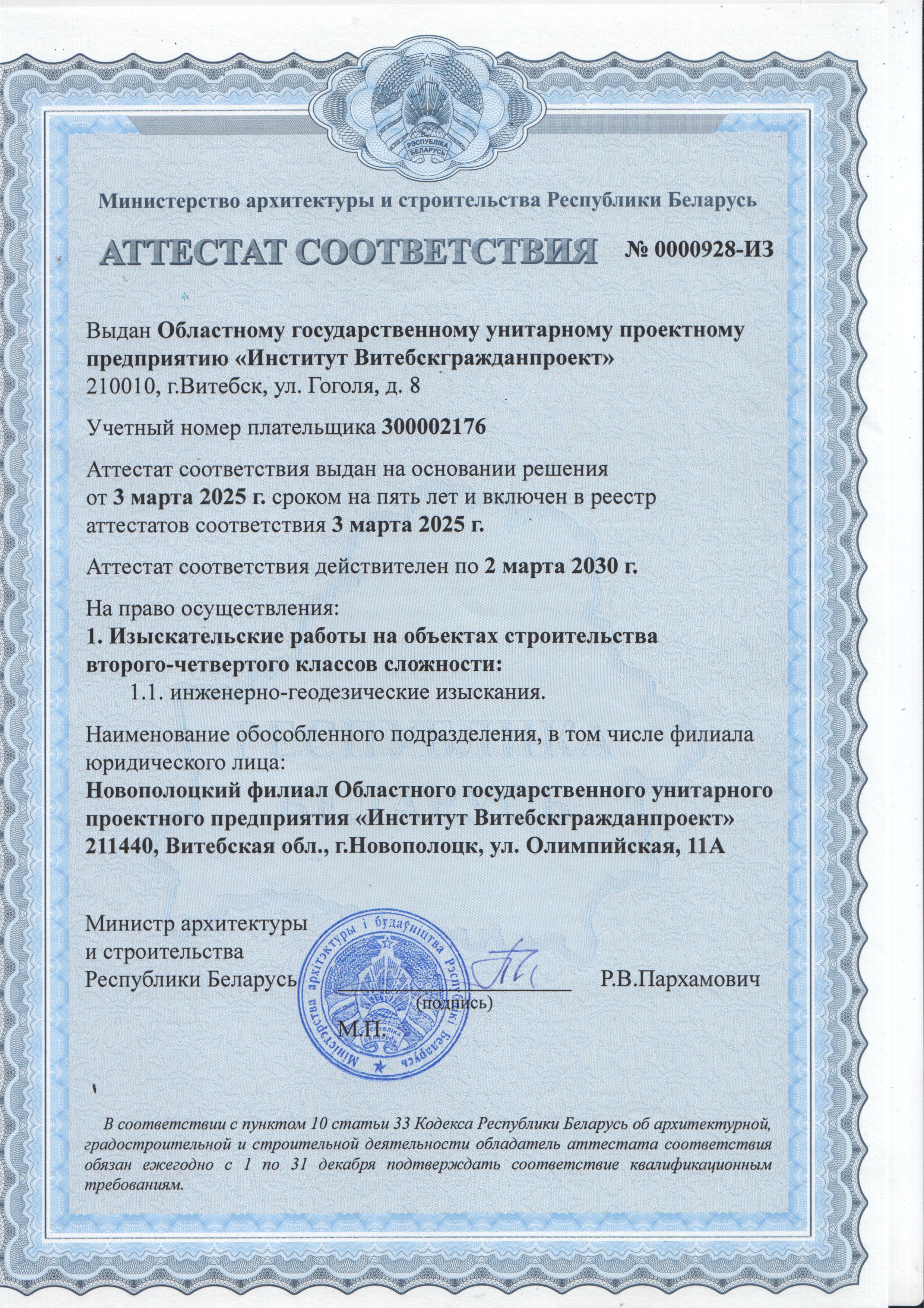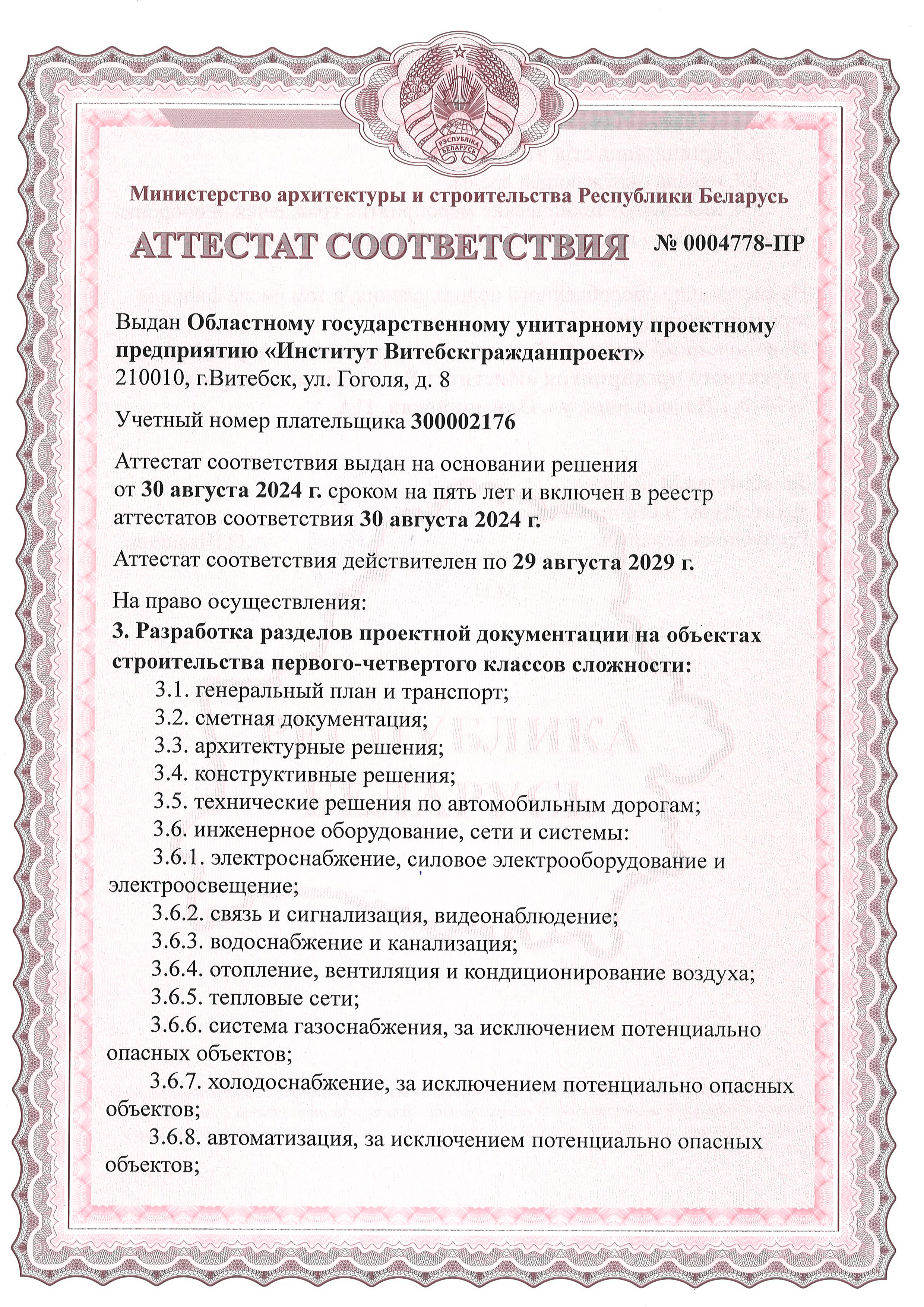 УП "Институт Витебскгражданпроект" работает на рынке проектных работ Республики Беларусь с апреля 1936 года. Предприятие является региональным территориальным институтом и выполняет функции: